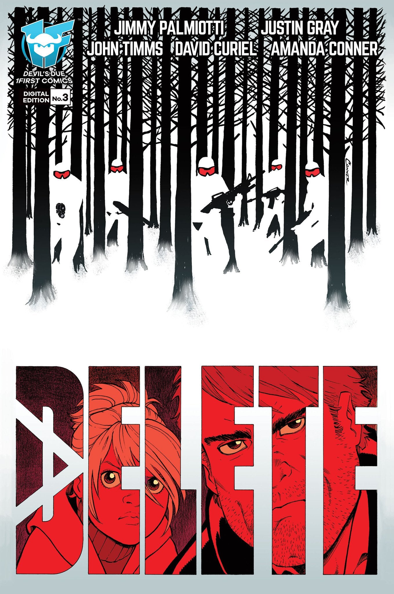 From the Harley Quinn team of Jimmy Palmiotti and Justin Grey! In Delete #03, Spencer and Kalina are running from a powerful senator who will stop at nothing to recover the memories planted in Kalina's head, memories that threatens to ruin his career and send him to jail for life.